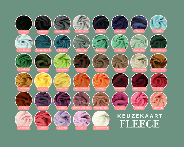 Kies maximaal vier kleuren fleece en vul hieronder in
